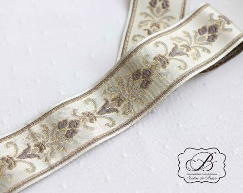 ベージュ地にグレートゴールドの刺繍リボンです。