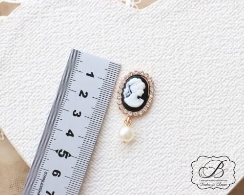 カメオの周りをラインストーンが彩る、パール付きのパーツです。