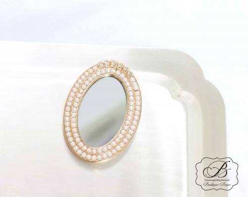 2連のパールとビジューが上品な、オーバルミラーです。