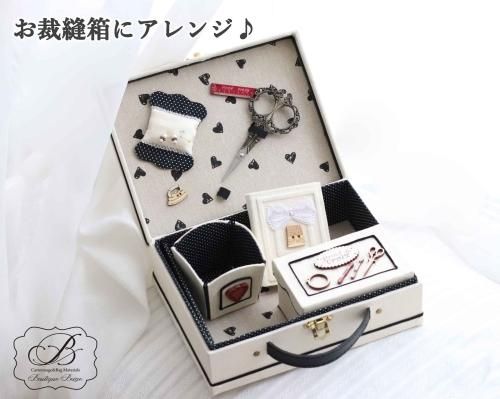ミニサイズで持ち運びしやすく、カルトナージュや刺繍など、手芸のお道具箱にピッタリのデザインに。